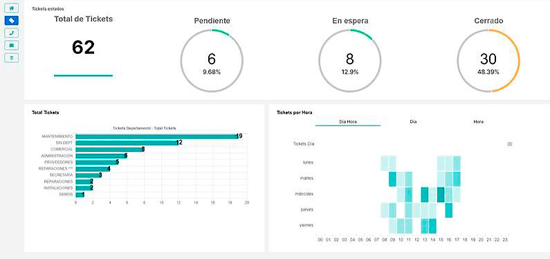 Informes y Cuadros de mando de los KPIs para la tomar decisiones de manera instantánea. Los datos del sistema de ticketing se recopilan en tiempo real, verás toda la información en un click.